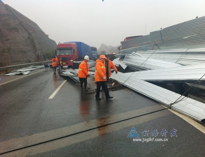1月24日9时左右,一辆运载铁扣板物品的大型货车行驶到梨温高速公路K553公里处,因突发爆胎撞上中分带防撞护栏,造成双向交通阻断。杨梅岭养护管理所闻讯即动,紧急处置,30分钟内,道路基本恢复通行。
