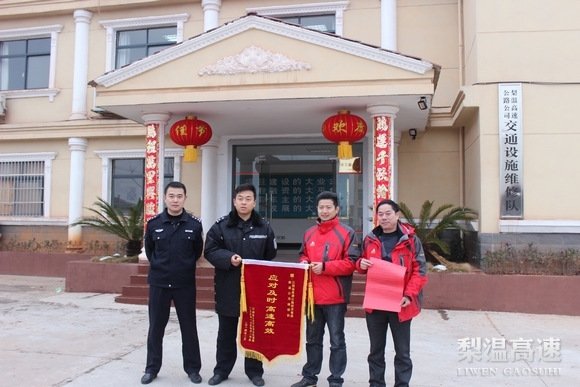 2月12日下午,随着一通电话响起,江西省公安厅交警总队直属三支队第一大队秩序二中队队长俞鹏飞亲手将一面“应对及时,高速高效”的锦旗和一封《感谢信》送到维修队队长胡鹏手中,对维修队应对抗冰雪及时,高速高效的工作作风给予真诚的谢意。