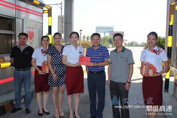 7月23日上午,总公司党委副书记、纪委书记刘楚有带队在梨温公司党委副书记周洪达的陪同下,冒着高温,先后到梨温高速东乡管理处、梨温设施维修队、鹰潭西收费站看望慰问坚守岗位的员工,为大家送来防暑降温药品和慰问金,叮嘱大家要注意防暑降温,做好食堂夏季食品卫生等,在炎炎夏日为坚守者送上了丝丝清凉。