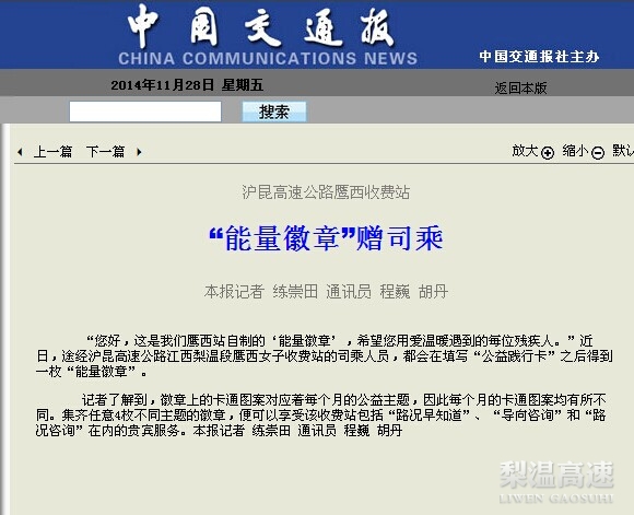 【媒体聚焦】中国交通报:"能量徽章"赠司乘