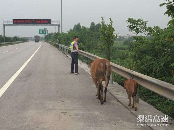 为保证高速公路上过往司乘人员的行车安全,东乡养护所副所长舒丹顶着炎炎烈日,步行7公里,耗时将近3个小时才将这两头牛牵出高速公路,并在高速公路两边就近的村庄张贴了招领启示等措施,便于失主招领。