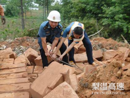 8月14日,梨温公司鹰潭管理处联合鹰潭路政支队一大队对沪昆高速公路梨温段593KM+600M处南幅一处违法建筑进行了拆除,并在沿线村庄宣传高速公路的行车安全和《江西省公路路政管理条例》,活动进一步维护了高速公的路产路权。
