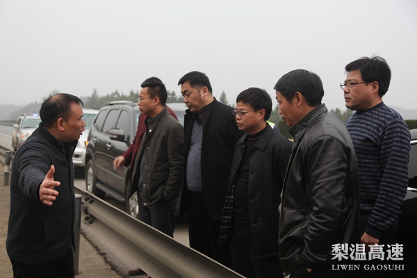 1月26日,省交通运输厅副厅长王昭春深入梨温高速检查指导工作,省交通运输厅路航管养处处长糜向荣、基建处副处长丁光明,省交通工程质监站站长彭东领、公路开发总公司总经理陈立新以及梨温公司总经理潘皓、党委书记周洪达陪同。