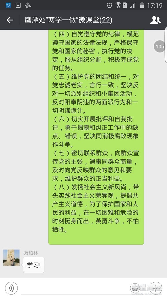 在“两学一做”学习教育中,鹰潭管理处党支部创新学习教育方式,借助微信手机软件,开设“两学一做”微课堂。