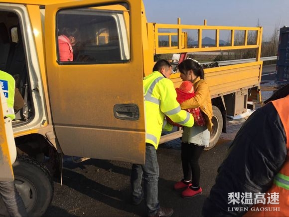 该所员工安排母亲带着两个孩子坐上养护巡查车休息,并送上矿泉水、饼干。车主缓过神之后,不禁感动落泪,他竖起大拇指连连称赞:“真是太感谢你们了,太感谢你们了........”