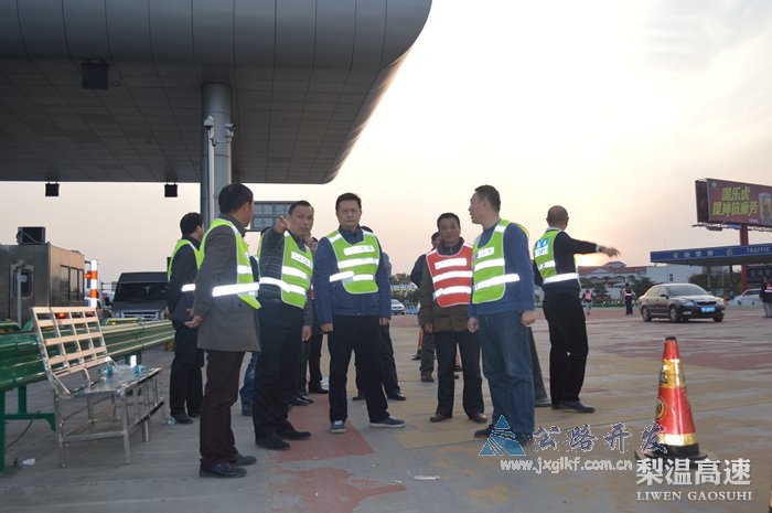2月18日,总公司副总经理陈爱平赴赣浙界梨园收费站督导春运保畅工作。梨温公司总经理潘皓,党委副书记、纪委书记雷霆,总公司经营开发部、信息中心、锦路公司负责人陪同。