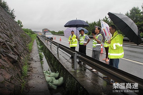 险情就是命令。接到报告后,梨温公司高度重视,3日一大早,总经理潘皓、副总经理邓琼华在养护处、东乡处负责同志陪同下,冒雨前往边坡隐患点,实地察看,商讨处置方案。