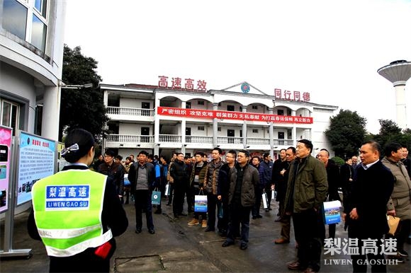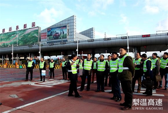 12月27日,全省高速公路车辆通行秩序专项总结会暨春运保畅工作现场会在梨温高速赣浙界梨园收费站召开。省交通运输厅副厅长谢德强、省高速交警总队政委杨见云出席会议并讲话,省交通运输厅财务处处长陈毓书主持会议。厅联网中心党委书记雷毅、主任雷茂锦,省高速集团副总经理段卫党,开发总公司党委书记黄铮、副总经理陈爱平及厅联网中心、集团相关部门,各路段单位赣定高速、寻全高速、康大高速负责人等80余人参加会议。