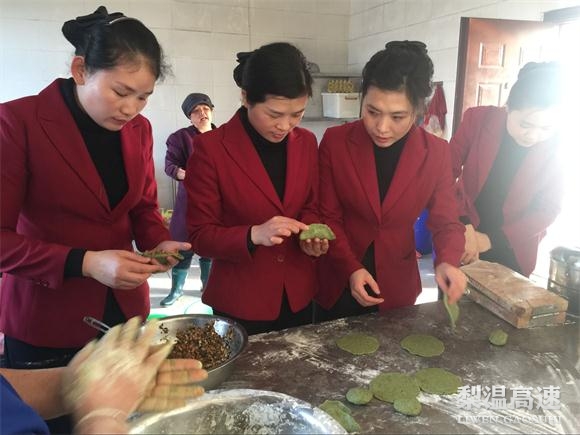活动中,该站员工人手一个袋子在田野小道上寻找艾叶,将采摘好的艾叶汇集起来,然后坐在一起挑拣嫩的叶子,洗干净剁碎,再放入糯米粉揉成绿色的面团,包上咸菜豆腐干……