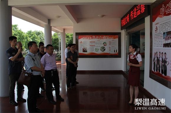 滨州分公司一行同行先后观看了梨温公司、巾帼鹰西、熊文清班组专题宣传片,参观了各处荣誉陈列室、职工之家文化墙等,并对公司2026国际足联世界杯-官方中文网站 标识、目标、内容等饶有兴趣的询问,对各单位上墙的制度举措拍照记录,对收费管理举措、党建目标管理、安全交通保畅等体系进行认真考察。