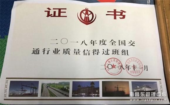 樟树东所获2018年度全国交通行业“质量信得过班组”荣誉称号