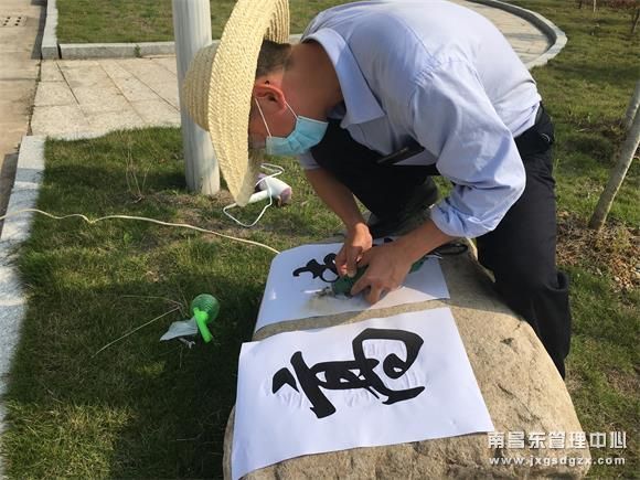 该所以路域环境整治工作为契机,从小处着眼,大处着手,将院子里堆放的石头变废为宝,从设计到篆刻,再到涂漆,都是员工亲手完成。在烈日下,该所员工戴着草帽和口罩,手握电钻将石头上贴的字样“勾画”出轮廓,还不时用吹风机吹散堆积的石沫,最后再用清水冲洗。经过一个多小时的努力,石头上“高速”两个字已现雏形。