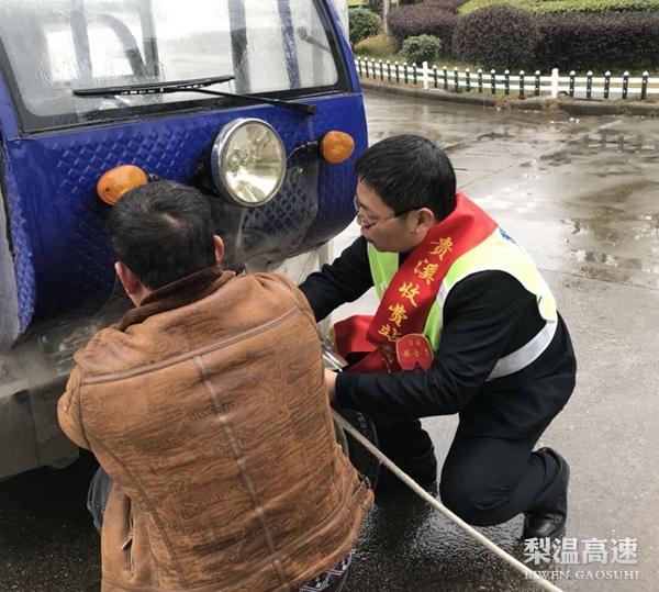 昨日,魏彪正在当班,发现收费广场停着一辆三轮摩托车,他上前询问,了解得知车主来高速路口附近送货,因为天气太冷车子无法启动。魏彪仔细检查一番,发现情况比较特殊,需要专业维修点才能解决,他马山请示当班站长,安排车辆将三轮摩托车拖到附近的修车点维修,男子掏出100元表示感谢,他婉言拒绝并笑着说“我们是免费服务的”。