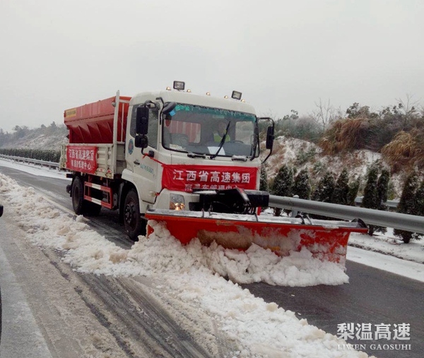 盯紧重点路段,集中力量抢通。中心所辖都九、九绕高速公路地处赣北,持续低温天气下,道路积雪积冰较为严重,不及时处置很容易出现交通事故。该路段管理所在最短时间内调集包括平地机、装载机和铲雪车在内的16台大型设备用于铲冰除雪,投入融雪剂、工业盐190吨,反光锥1500个,防滑链10套,标志标牌100块,组织80余人24小时不间断对全线道路尤其是重点结冰路段、桥面、互通、匝道等区域抛洒融雪剂、工业盐,路面冰雪得到有效清理。