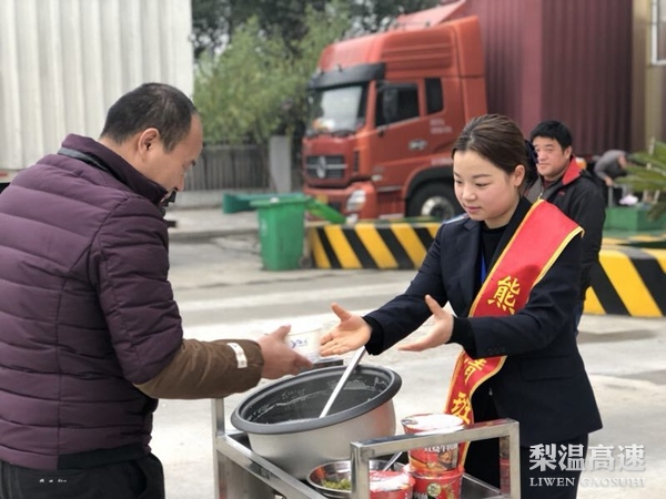 抓好收费服务,开展暖心行动。中心各收费站针对车道出现结冰现象,通过铺设麻袋和防滑垫等措施,保障司乘安全快捷通行。天寒地冻的天气,车辆故障、抛锚的现象时有发生,南昌南管理中心将各收费站变为服务站,当车主需要帮助时及时伸出援手,免费提供热水、修车等贴心服务。中心各收费站还储备了方便面、饼干等食品,有的收费站还准备了热稀饭和热面条,第一时间给饥肠辘辘的司乘送上,通过点滴的行动温暖风雪中的赶路人。(南昌南管理中心)