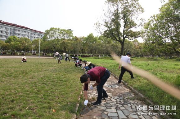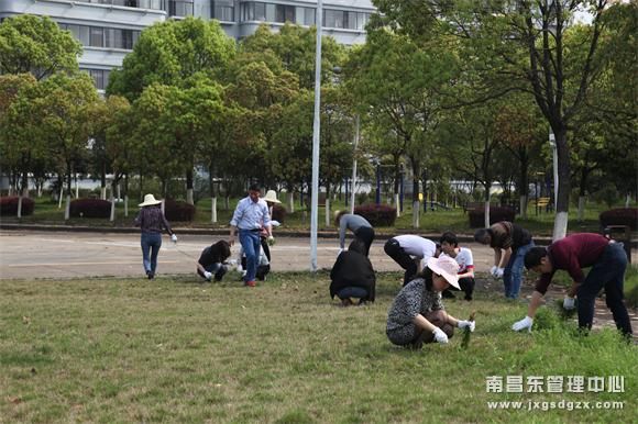 4月9日,南昌南管理中心机关党支部开展“拔草护绿”主题党日活动,组织党员干部、入党积极分子清理拔除机关草坪杂物杂草,整洁大院办公、生活环境。