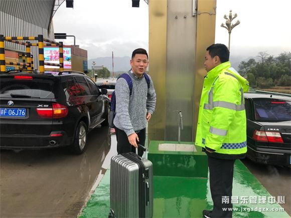 2月16日,下午12时左右。南昌南管理中心玉山收费站正接交警通知。入口解封之际,一名在节后返程的学生拖着行李箱找到收费站工作人员求助:因为前面高速封路,他在玉山高速收费站中转乘车返校,但车子还没有到。