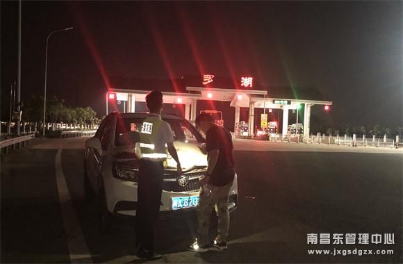 9月16日23时30分左右,施救清障车运送一辆车头受损的小轿车从南昌南管理中心罗湖收费站下高速,车上下来一对年轻情侣,女孩精神恍惚,瑟瑟发抖。