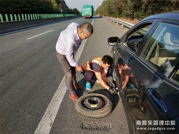10月15日下午15时许,市民徐先生携家人驾车在返回上饶的途中,行驶至梨温高速南线K522公桩时车辆左前轮突然爆胎,这突如其来的状况让徐先生和家人惊出了一身的冷汗,他立即将车辆停在应急车道上。由于徐先生没有更换轮胎和求助的经验,面对滚滚车流的高速,徐先生和家人站在车旁不知所措。此时,正在路段进行养护巡查的杨梅岭养护站工作人员发现了受困的徐先生一家,他们立即在故障车后方摆好安全锥,将徐先生一家转移到高速公路安全地带,并迅速对故障车更换了备用轮胎。