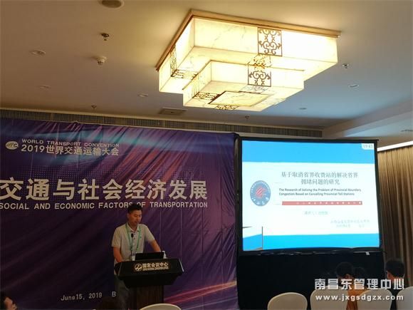 2019年世界交通运输大会于6月14日在北京召开,南昌南管理中心樟树东收费所刘德雄受邀参加此次大会并发表演讲。演讲题目为“基于取消省界收费站的解决省界拥堵问题的研究——以江西省界梨园收费站为例”