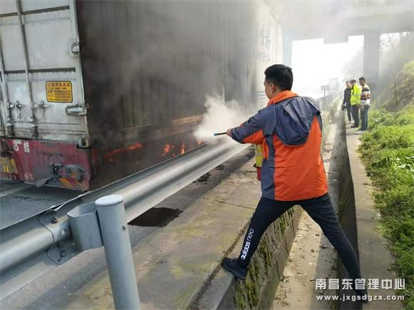 当日上午,正在该路段巡查的杨梅岭养护站工作人员发现对向车道上一辆货车的尾部正在冒着滚滚黑烟,该站养护工作人员立即意识到了险情的发生,他们立即靠边停车从车尾箱取出常备的干粉灭火器赶上前去,对准着火点一阵猛攻,火势立即得到了有效的控制。此时,惊魂未定的车主激动的握住了养护工作人员的手连声道谢:“真是太感谢你们了!如果不是你们及时赶到,后果不堪设想啊!”
