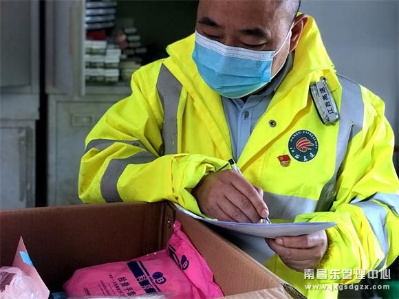 在玉山收费所的疫情物资储备的仓库里,有一个身影在忙碌着清点、整理物资。这个人叫邬军,大家喜欢尊称他为“邬总管”。