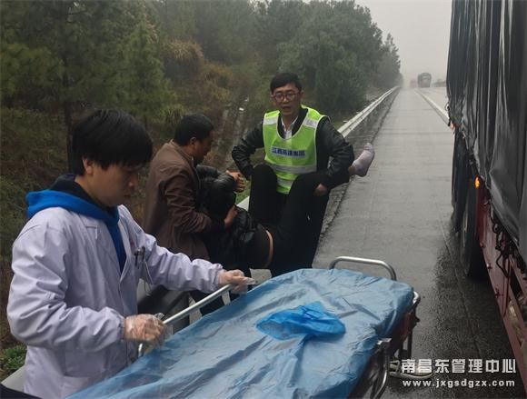 今天是春运的第九天,也是中国传统节日小年,这一天,傅学君值守晚上十点到凌晨两点的夜班。晚上同事小董看他不停打喷嚏便说道:“傅哥,你这都感冒了晚上就别去了吧,晚上我替你值班。”傅学君摆摆手说:“没事!轻伤不下火线嘛,况且这段时间大家都累,你们休息一会。”刚巡路到K491南昌方向时,便碰到一辆大货车撞到了绿化带上,傅学君马上给高速交警和清障救援队打电话说明现场情况。