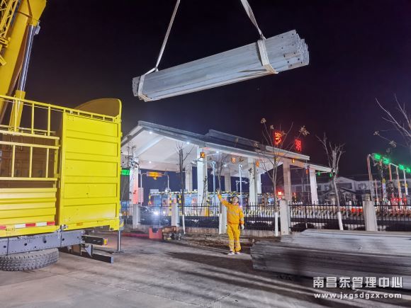 12月22日,南昌南管理中心清障救援队东乡中队协助养护人员吊卸高速公路护栏板。