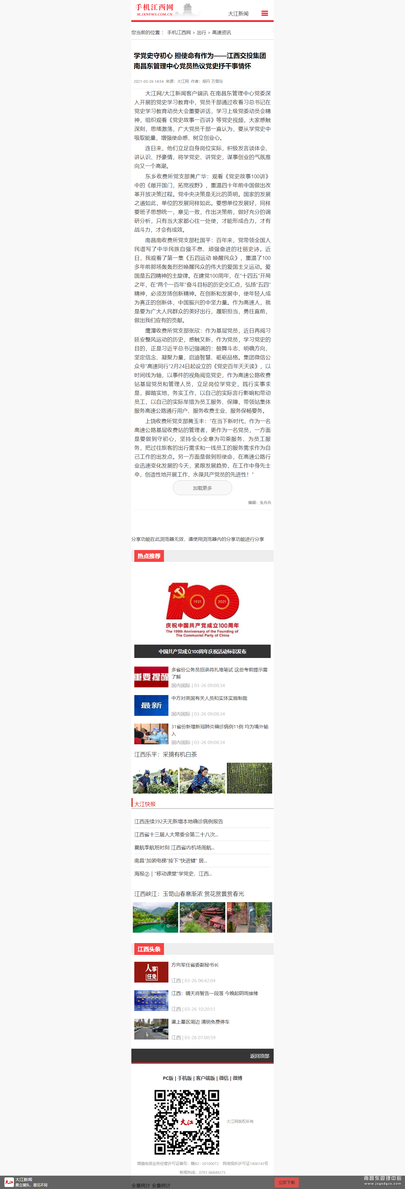 学党史守初心 担使命有作为——江西交投集团南昌南管理中心党员热议党史抒干事情怀-出行-手机江西网 //m.jxnews.com.cn/go/system/2021/03/26/019228130.shtml