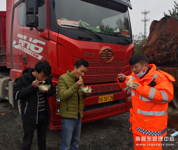遇上大型货车因为处理事故停在停车场,他都会去嘘寒问暖,帮司机联系交警、早中晚送饭、唠唠家常、搬搬货,这些都是他做得最不起眼的事,也是最让人值得钦佩的事。