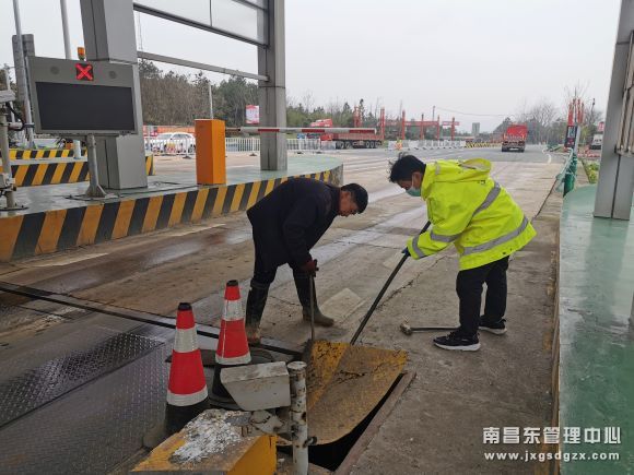 3月10日上午,南昌南管理中心广丰收费站收费车道地磅维修井盖板被车压陷,该站人员及时处置,消除安全隐患,确保了车辆行车安全。
