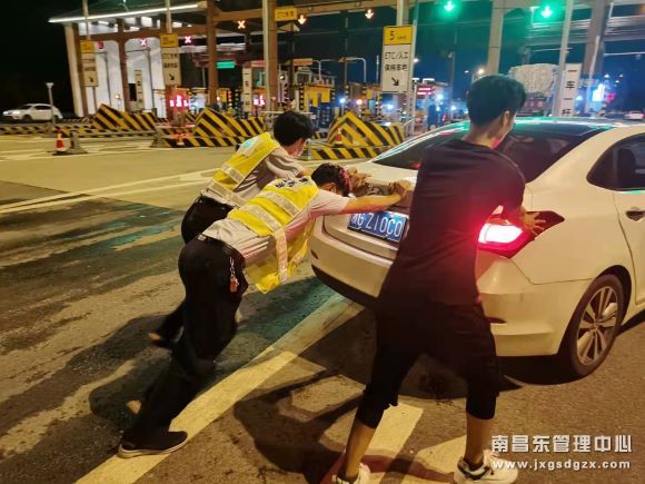 弋阳收费站:合力抬起被困车辆 用心解决司机困难