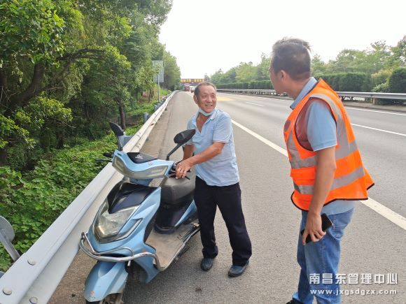 8月24日上午,南昌南管理中心杨梅岭养护站工作人员在日常巡查工作途中,在K553桩号发现一名男子正骑着电动摩托车行驶在高速硬路肩上。身边不时有大货车行驶呼啸经过,沪昆高速车流量大加之天气炎热,情况十分危险。该养护站工作人员为防止惊扰该男子,进而影响其安全,没有第一时间拉响警报,而是示意过往车辆减速避让,随即在前方守候,最终将男子成功拦下。
