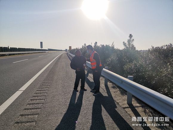 12月1日8时50分,南昌南管理中心东乡养护所新干养护站相关人员进行路面巡查,行进至K147+340左幅路段时,发现一位老者沿着中分带护栏超车道逆向前行,迎面而来的车辆纷纷鸣笛躲闪避让,险象环生。