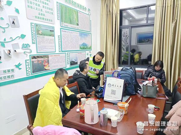 12月26日晚,南昌南管理中心铁路收费站工作人员为路途遭遇冰雪事故受困司乘提供帮助,以实际行动温暖司乘归家路。
