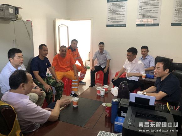 在清障救援队鹰潭中队,吴革森一行人首先参观了该中队场地设施、车辆设备、停车场等,随后在该中队办公室召开座谈会。座谈会上,双方针对清障救援队开展一年多工作以来所产生的一系列问题进行了深入交流探讨,陈本华书记对在路上作业安全、人员设备管理、作息时间等方面提出了意见建议。