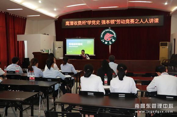 为树立正确的党史观,引导党员及员工学党史、悟思想、办实事、开新局,5月6日,南昌南管理中心鹰潭收费所举办“学党史 强本领”系列人人讲课活动,提高队伍业务能力,更好地服务出行群众。