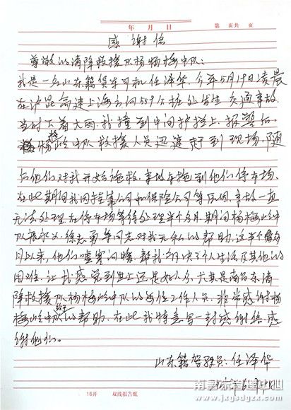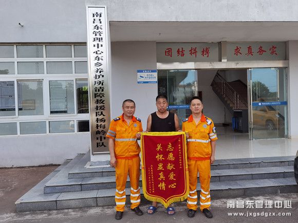 6月30日,山东的任师傅亲自来到南昌南管理中心清障救援队杨梅岭中队,为张永义和徐志勇两名中队长送上了一面印有“志愿献爱心,关怀显真情”的锦旗和一封手写的感谢信。