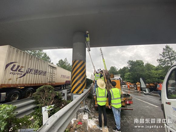 “险”:高速公路桥墩被撞,“别慌”:养护单位紧急排险