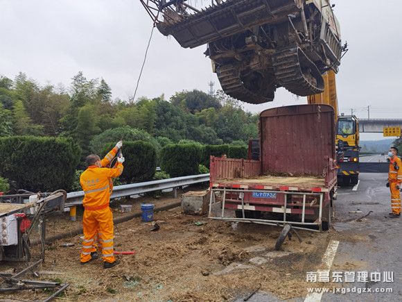 据悉,当天11点40分,该中队正在开展大练兵活动时,接到一起事故报警,在沪昆高速K665南昌方向发生一起载有联合收割机的货车撞向护栏后侧翻事故。该中队迅速安排拖车与吊车出警,于11点55分到达现场,立即做好安全围蔽和疫情防控工作。由于此次救援与以往不同,货车与联合收割机侧翻在快速车道两车并未分离起吊任务难,救援过程需要根据情况先把联合收割机与车辆分离再起吊,因联合收割机在货车抖箱上并未有加固绳,该中队队员凭据经验分工明确、做好安全围蔽、指挥交通、确保安全后先起吊货车再起吊联合收割机,终于在下午13点50分将事故车辆和联合收割机吊起,最大能力为车主减少车辆损伤程度,车主在现场表示非常认可该中队的救援工作。