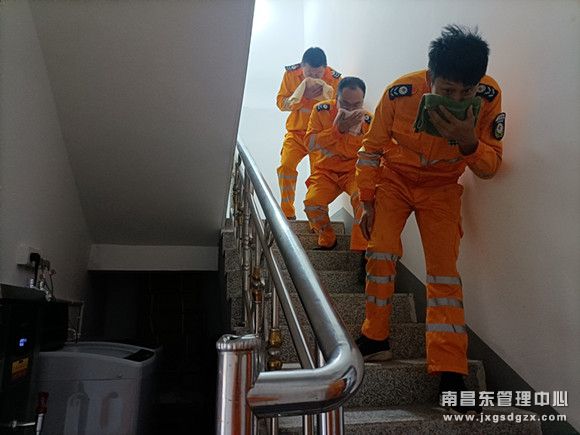 10月21日14点30分,南昌南管理中心清障救援队东乡中队响起一阵急促的警铃,办公楼宿舍楼层忽然弥漫着浓厚的烟雾,全体工作人员用毛巾掩住口鼻,按照既定线路进行紧急疏散,迅速有序地撤离到东乡中队办公大楼前安全区域,圆满地完成了本次消防应急演练。