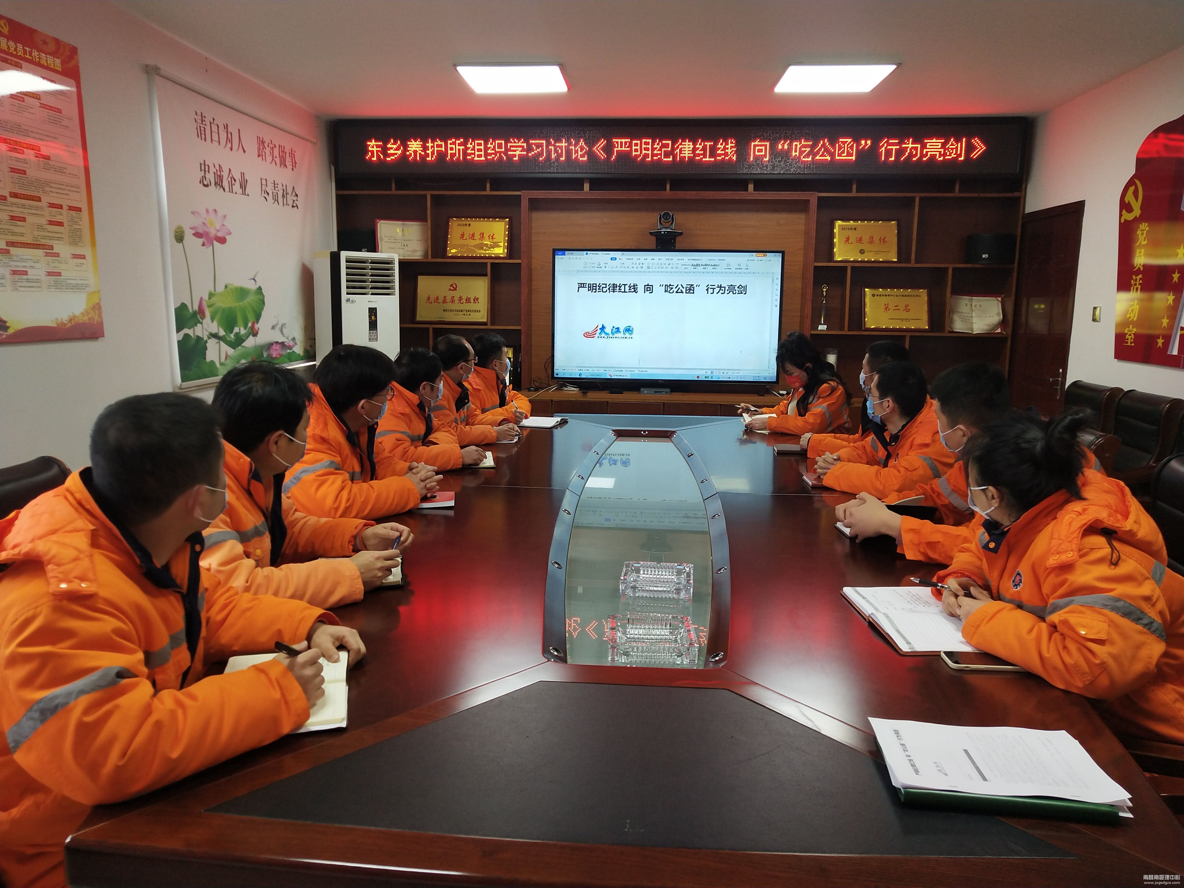 为进一步强化纪律约束,正确引导干部职工守住“底线”,不碰“红线”,2月9日,南昌南管理中心东乡养护所结合工作实际以“主会场+分会场”的形式组织学习讨论了江西日报赣纪轩文章《严明纪律红线 向“吃公函”行为亮剑》。