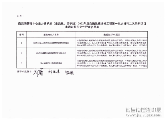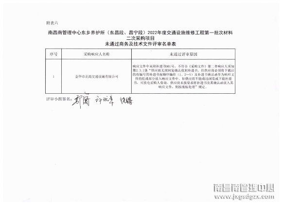 南昌南管理中心东乡养护所(东昌段、昌宁段)2022年度交通设施维修工程第一批次材料二次采购项目流标公告