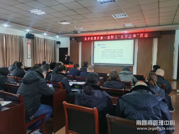 在举办的“东乡之声”自我演讲中,大家都站在同一个舞台展示,每人说说发生在自己身边的感人故事。活动既培养了讲课者的语言表达的能力,也拓宽了听课者的知识面,大家其乐融融,十分开心。其中余江收费站一线员工李文涛讲《如何调节情绪》,让大家受益匪浅,懂得了如何在紧张的工作状态中调解好情绪,防止因情绪不好降低了服务质量。