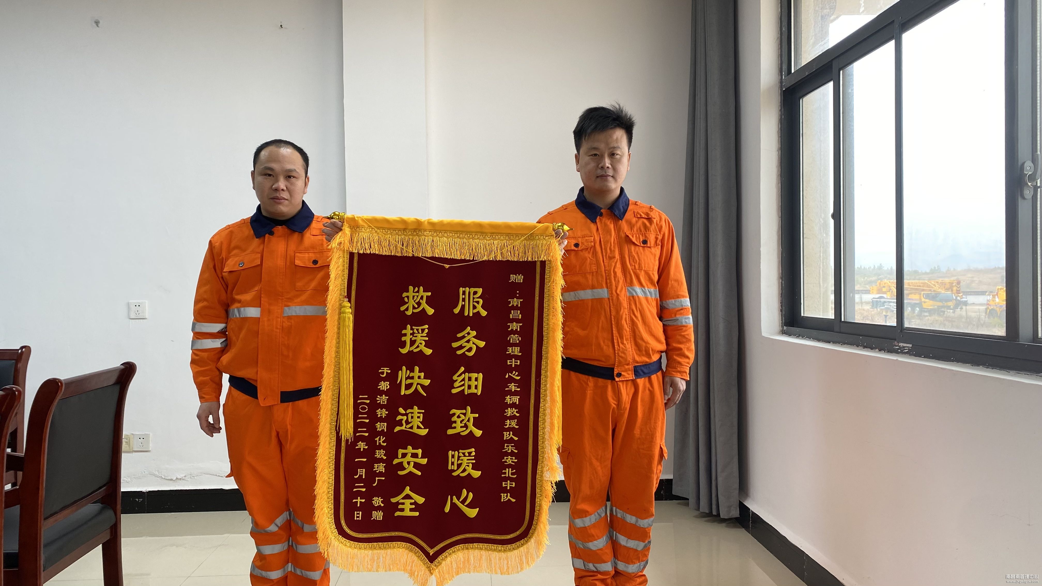 1月28日,南昌南管理中心车辆救援队乐安北中队收到一份特殊的快递,里面有一面写着“服务细致暖心、救援快速安全”的锦旗,看到落款署名,大家才想起来是之前被救援过的司机寄来的。