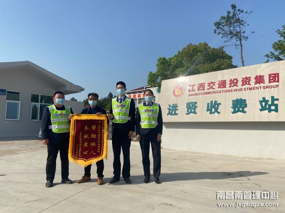 近日,进贤县白圩乡葫塘村罗某某抱着感谢的心情,来到南昌南中心进贤收费站,把一面锦旗送到值班站长手中,表达对收费站的感激之情。