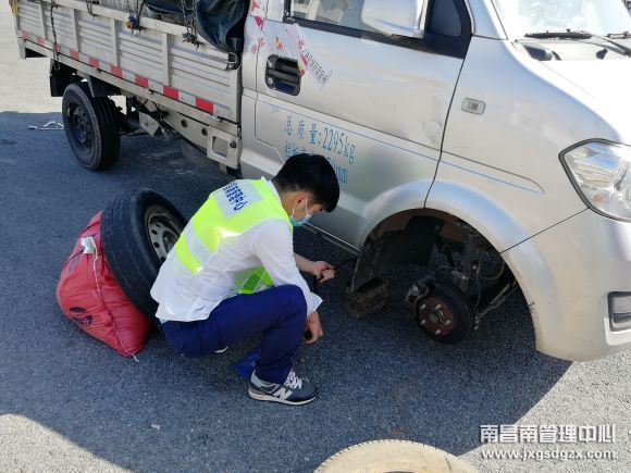 南昌南收费站热心帮助司机修轮胎