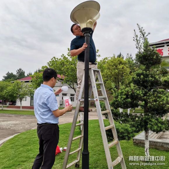 该站长期以来院区照明依靠5盏老旧路灯,夜晚来临时路灯的照明效果较差,影响了员工的夜间安全和出行。针对这一问题,该站动手将院区所有路灯检修及更换,并另外铺筑线路将车库及一些夜间无灯处全部安装节能灯。
