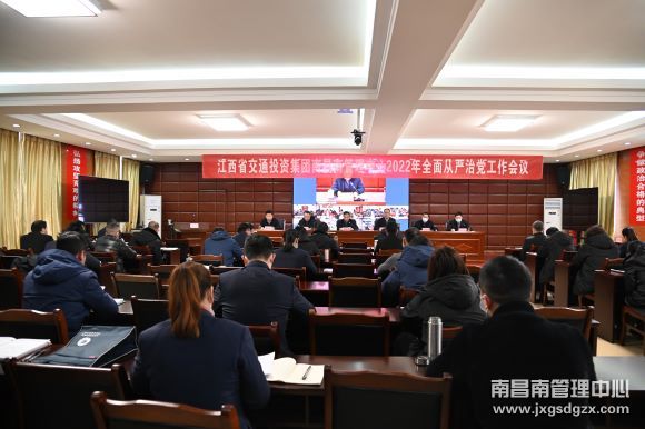 2月21日,南昌南管理中心以视频形式召开2022年全面从严治党工作会议。中心总经理万良红同志主持会议,中心党委书记陈本华出席会议。中心班子各成员,机关各部门负责人、各单位党支部负责人,中心机关副站级以上干部及全体党员参加会议。