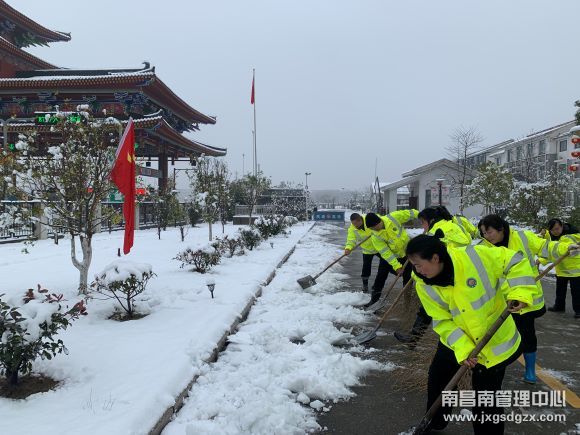 镜头四:拍摄者,杜晶。该中心樟树东所党员干部在抗冰保畅一线清扫积雪。